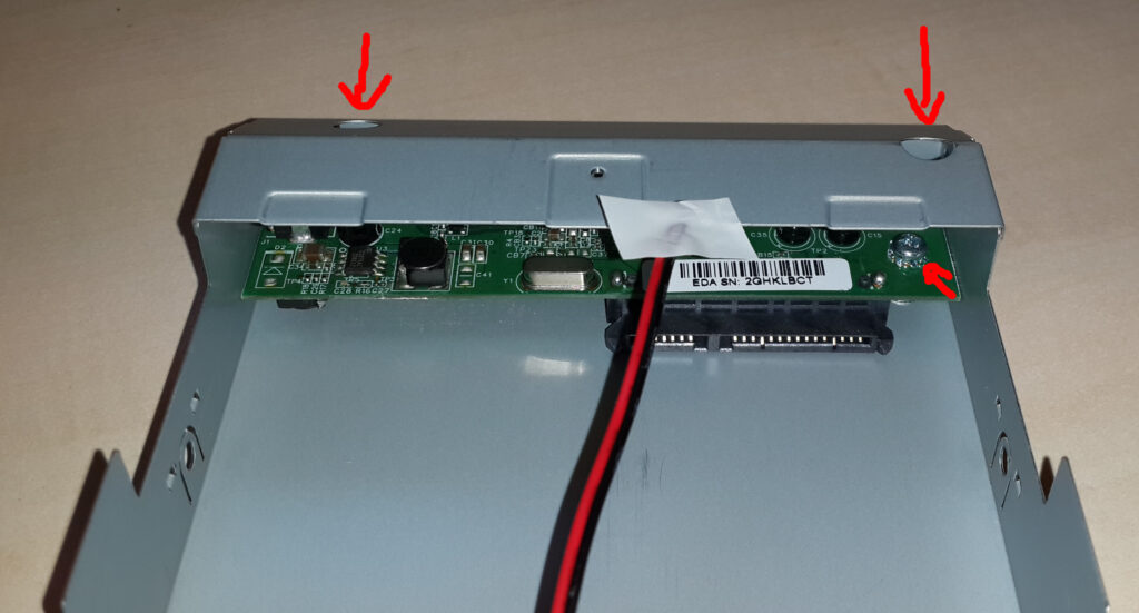 4. Son olarak, eğer hard diskin bağlandığı kartı da sökmek istiyorsanız; iki adet yıldız vidayı da söküp, kartı kendinize doğru çekiniz :